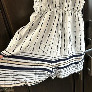 Lightweight romper made in Greece, halter style with braided straps/keyhole tie. Ikat style print. Pockets. Unlined. Tags cut, brand/size not known. Would say a 4/6 US Size. Measurements can be provided. EUC, worn once. Needs ironing.
