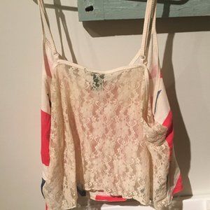 Flowly and lightweight. Intricate lace detailing on back. **note: does have a paint stain on right side so price is reduced! it may be able to come off, I havnt tried it yet.