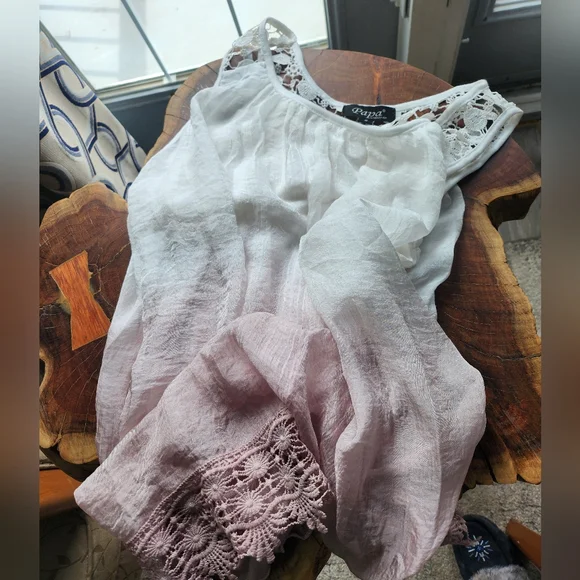 Papa summer top in two ombre layers size small . Beautiful lace border at the bottom. Soft polyester and rayon blend