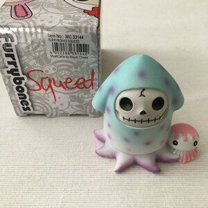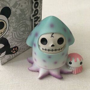 Excellent preowned condition polyresin figurine of a squid by Furrybones for Summit Collection Gifts in pink, blue, and purple on white. Black for the skull and details. Made of cold cast resin that is hand painted and polished. A YTC Summit original design. Earlier design from 2012. Includes all original tags, styrofoam and box.