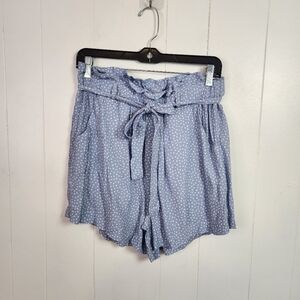 Sun Day Club Belt Blue Floral Shorts Paper Bag High Waist Pull On Pockets New