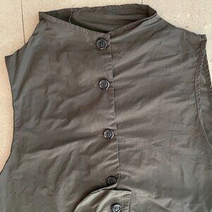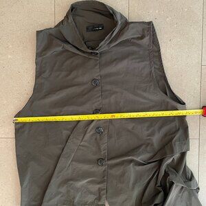 Selling a Sun Kim Asymmetrical Sleeveless Top Vest Neutral Taupe Grey-Small. This is. great travel top in polyester fabric that folds to nothing and is meant to be slightly crinkly. Super light and fabulous looking.