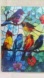 New, unused decorative colourful perched birds and flowers faux stained glass acrylic suncatcher.