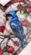 New, unused decorative heart shaped blue bird and red bird acrylic faux stained glass suncatcher.