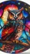 New, unused decorative colourful nighttime owl animal wildlife faux stained glass acrylic suncatcher.