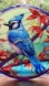 New, unused blue jay bird animal faux stained glass acrylic suncatcher.