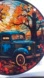 New, unused fall colours blue classic vintage pickup truck faux stained glass acrylic suncatcher.