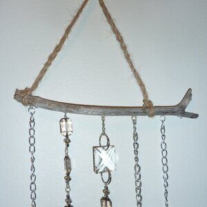 Suncatcher L Treated driftwood, cut glass pieces, Swarovski crystals etc