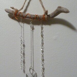 Suncatcher Q Treated driftwood, cut glass pieces and Swarovski crystals