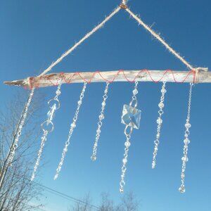 Suncatcher S Treated driftwood, cut glass pieces and Swarovski crystals