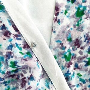 Ruffled mini blue multi coloured dress. This style is very feminine and is versatile for all occasions.