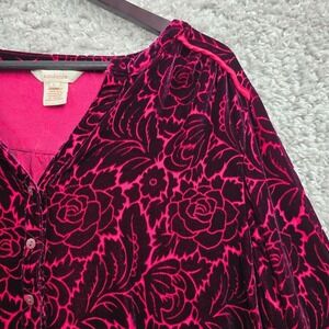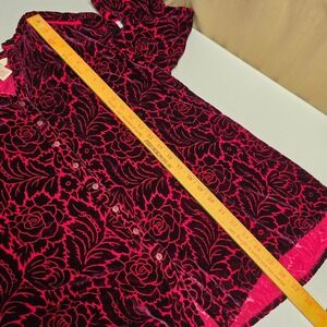 Sundance Blouse Womens Large Burgundy Floral Velvet Silk Blend Button Up Boho
