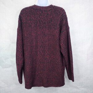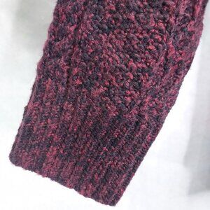 Sundance Sweater Womens Large Chenille Cable Knit Maroon Red Black Marled V-Neck