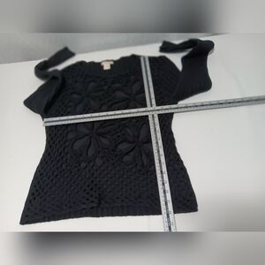 This sweater runs small Beautiful crochet front Excellent condition Free of any flaws