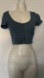 Sunday Best t-shirt, in very good condition - small stain on back (see photos). Soft Modal fabric with lots of stretch, ribbed, button up front, short sleeve cropped fit. Marked size XS