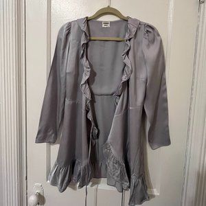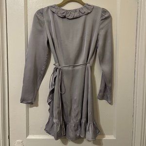 Sunday Best Aritzia, Long Sleeve Tara Satin Dress, Pearl Gray, US 2