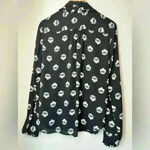 Sunday Best Aritzia Womens Black Floral Print Ruffle Button Down Blouse Medium