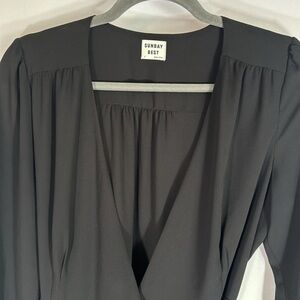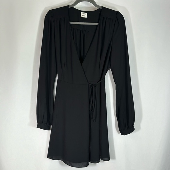 Sunday Best Black Chiffon Long Sleeve Front Wrap Dress Size 6