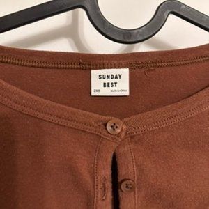 This is a cropped button-up cardigan with a crew neckline and fully fashioned construction. It’s knit with Wonder Yarn — the lightweight yarn that lives up to its name. This peachy-soft yarn offers the all-season warmth of wool, without the wool. It’s made with LENZING™ ECOVERO™ Viscose — responsibly sourced wood-based fibres produced through a process that reduces impact on forests, biodiversity and water supply. It’s constructed using a Double Knit stitch for structure and a flat, dense feel.