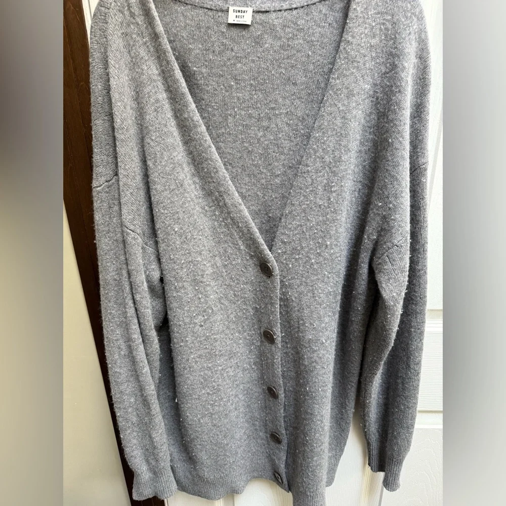 A must have classic cardigan that looks great on anyone and pairs well with any bottom. The sweater is soft and warm and has button closures in the front. The length is long and will most likely go past your bottom depending on your height.