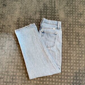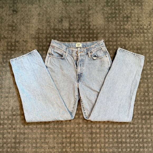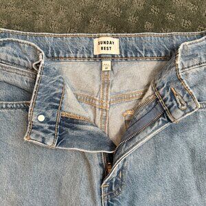 Mid-rise, straight leg jeans from Sunday Best (Aritzia). Classic light blue wash with a relaxed, effortless fit. Soft cotton denim – no stretch, holds its shape.