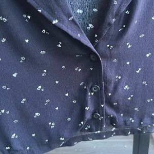 Sunday Best cropped top, Sunday Best navy blue top, Sunday Best heart print shirt, Aritzia Sunday Best crop top, Sunday Best short sleeve top, coquette, soft girl, cottagecore, romantic, preppy, girly, minimal chic, vintage inspired, casual cute, summer vibes, street style, night top