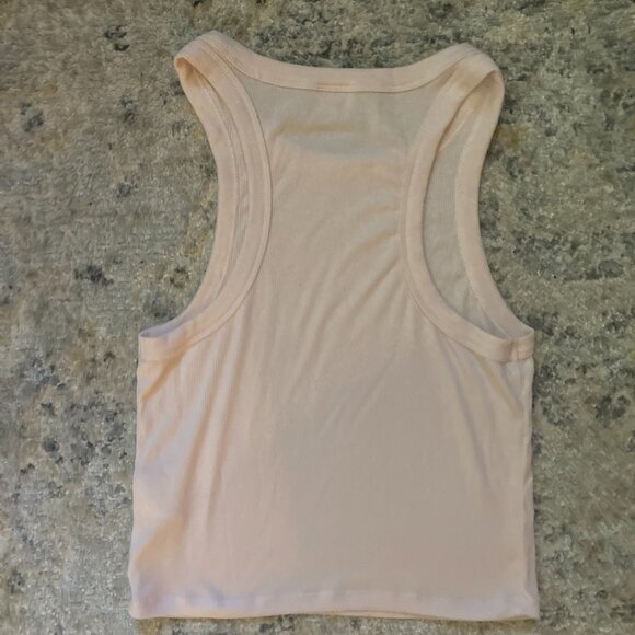 Pale pink ribbed, cropped, racer back tank top. Size XS "Sunday Best" brand. Like New