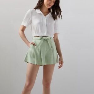 Bold scarlet blouse with short sleeves and button-up design. All items are washed in unscented detergent and are ready to wear.