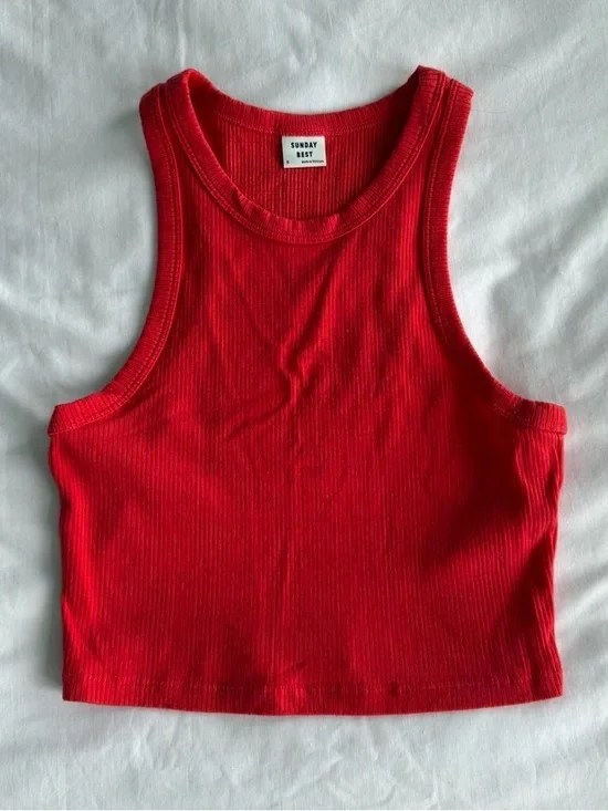 Sunday Best Red Ribbed Cropped Racerback Tank