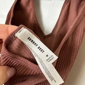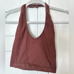 Stylish ribbed tank top in a rich brown color. Perfect for casual wear.