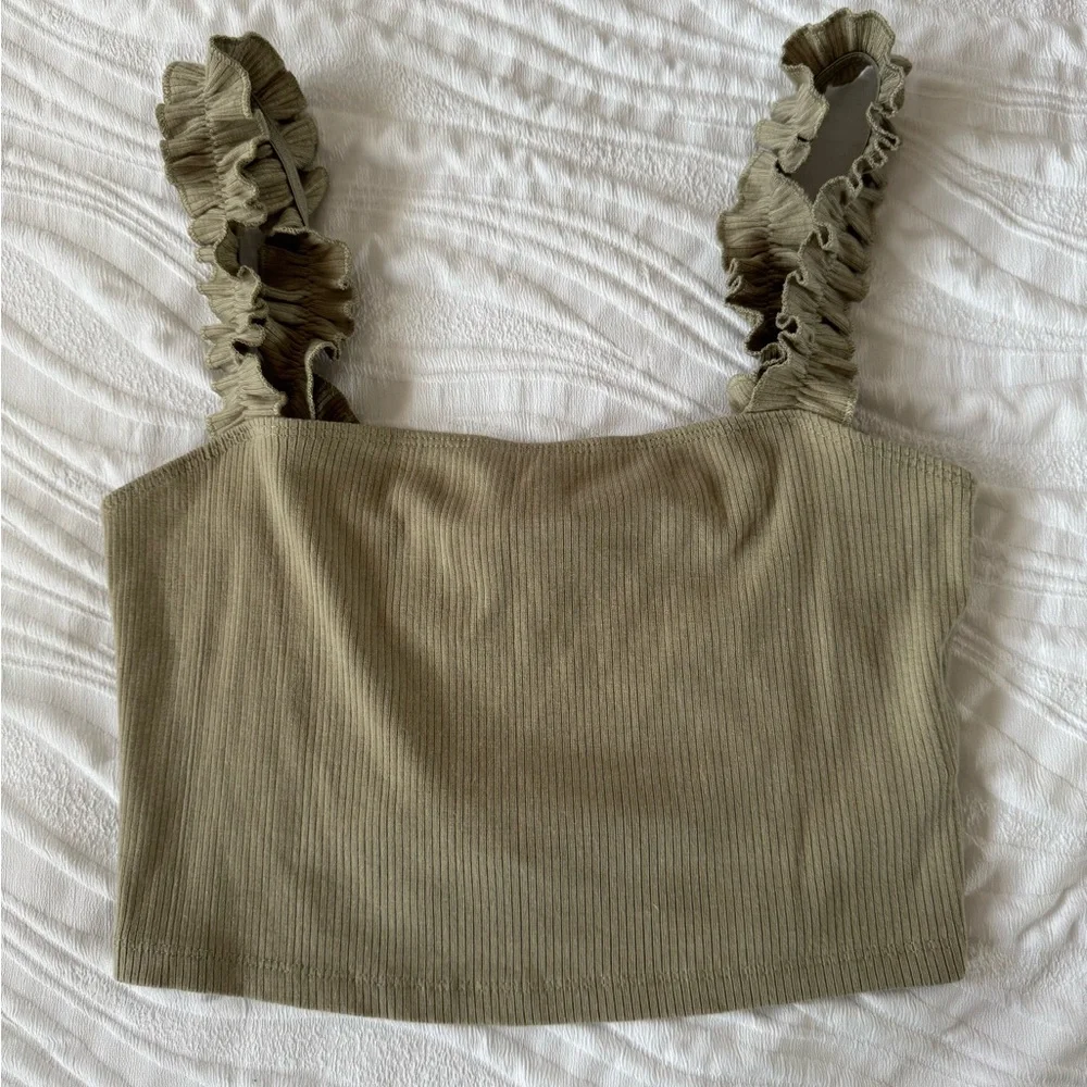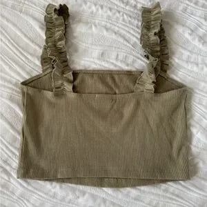 Olive green, cropped fit. Size medium - worn twice. In like new condition