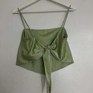 This is a cropped scarf blouse with adjustable straps, a tie back and a bias cut. It's made from Effortless Satin™ — drapey, lightweight Japanese satin with a glossy look and feel.