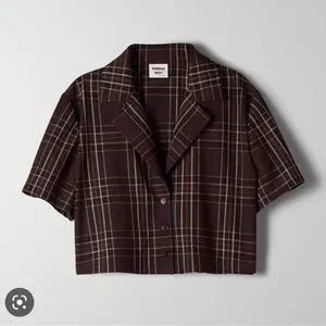 This is a cute boxy-fit button up in stretchy fabric. Great quality. Excellent condition! So cute with high waisted jeans! Fits to size.