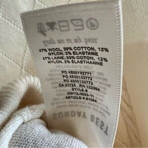 This is a Sunday Best wool & cotton cable knit sweater vest. It’s cropped with a a v-neck and the kit has stretch. It’s a size small and in excellent condition