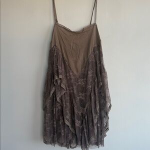 Cascading ruffles and sheer floral lace adorn this so sweet slip dress by Intimately. Color is Leafless Tree. Size S. New Spring 26 piece!