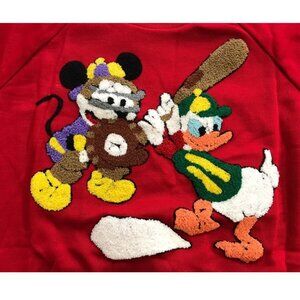 Vintage Sunday comics Disney Mickey Mouse 1980s youth size Medium stretchy knit T-shirt with awesome yarn punch graphic! Unworn vintage deadstock with original hangtag still attached! Tag marked made in Korea.