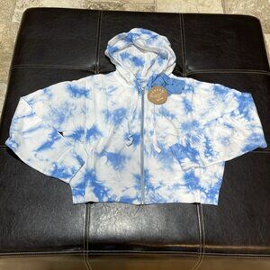 A tie-dye print brings soft color to this cozy cropped hoodie cut from baby-loop French terry that's knit from soft cotton and modal. All Sundown tops come with a free scrunchie, made out of fabric scraps.