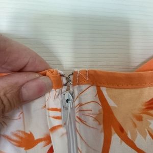 Size 13. Reitmans. Cute sundress, orange and white. Only worn a couple of times. Pit To Pit----19 inches