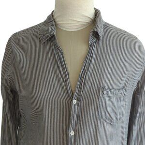 This is a blue and grey striped lightweight cotton button down shirt by Sundry.