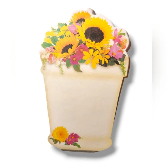Small cute notepad in the shape of a flower pot with sunflowers.