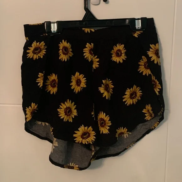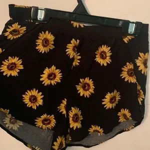 Cute zip up sunflower shorts with light material for warm weather. Black with standard sunflowers and size medium