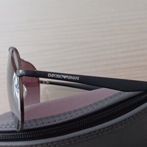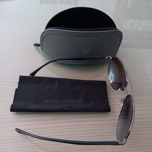 Emporio Armani sunglasses for men, aviator style, black frame. Sold with carrying case and cleaning cloth. Size on photos.