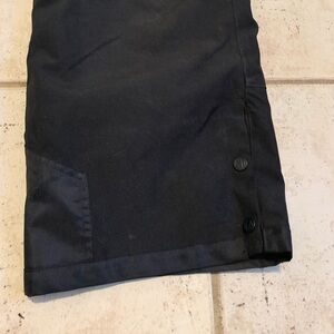 • Cuffs: The bottom cuffs have snaps, likely to make it easier to pull them over ski boots, and may include internal snow gaiters