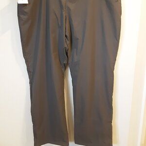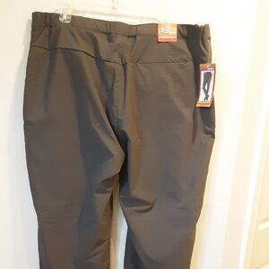 NWT Womens SunIce Stormpack windproof lined pants. Straight-leg fit in a neutral dark grey stretch fabric shell (94% nylon, 6% Spandex) with microfleece lining. Front zipper fly, button closure; elastic in back waist. Pockets: two in the front, one zippered in the back. Zippered ankle openings. Size XXL, inseam 29.5 inches. Non-smoking home, no pets.