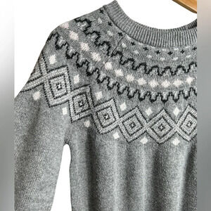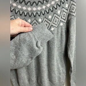 Sunice wool-cotton fair isle sweater, M, crewneck, gray, Ski Lodge Cottagecore