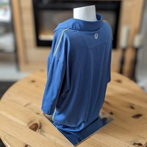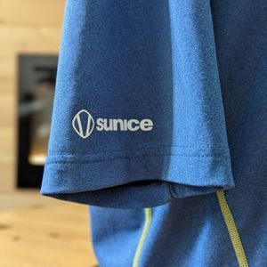 This is a Sunice Blue and Green lined Short Sleeve 1/4 button up collard shirt Unisex. Very nice shirt and nearly new, in fact we believe it is new without tags but we can't be sure.
