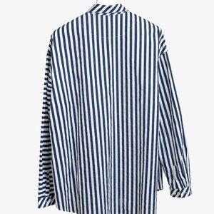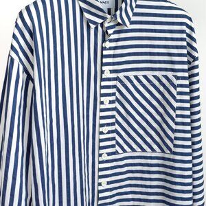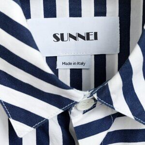Expertly crafted from soft cotton poplin, the Sunnei striped shirt boasts a dynamic alternating stripe pattern in classic navy and white. Complete with a convenient patch pocket and single-button cuffs, this long-sleeve shirt is a versatile addition to any wardrobe. Perfect for showcasing effortless style with a touch of sophistication.