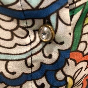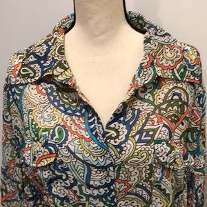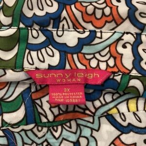 Sunny Leigh colourful button down shirt diamond buttons 3X Vneck roll up sleeves with designer print