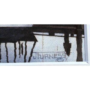 Sunset At The Marina Watercolor Print Framed Signed JFurness Wall Mount 6.5*4.5"