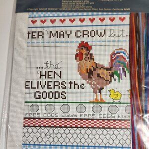 Sunset Counted Cross Stitch Kit Rooster Chicken Farmhouse Decor New Vintage